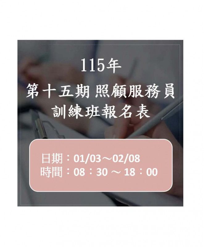 第十五期照顧服務員訓練班(假日自費班)